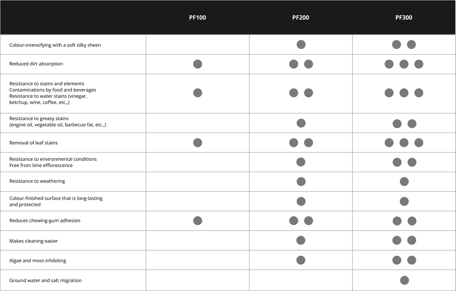 The ProtecTop® system is designed to prevent moisture and dirt from infiltrating the stone. Depending on various Protect Factors, the level of protection can vary. In some cases, moisture and dirt are completely unable to penetrate the stone, while in others, they may only be able to partially do so.